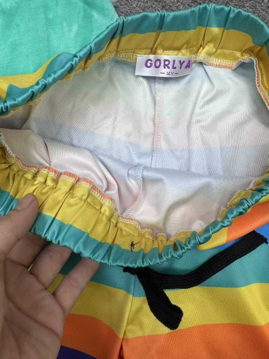 全清2.9亚马逊跨境外贸童装夏季新款,炸街彩虹条短裤...
