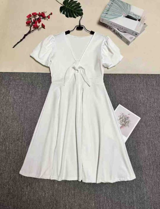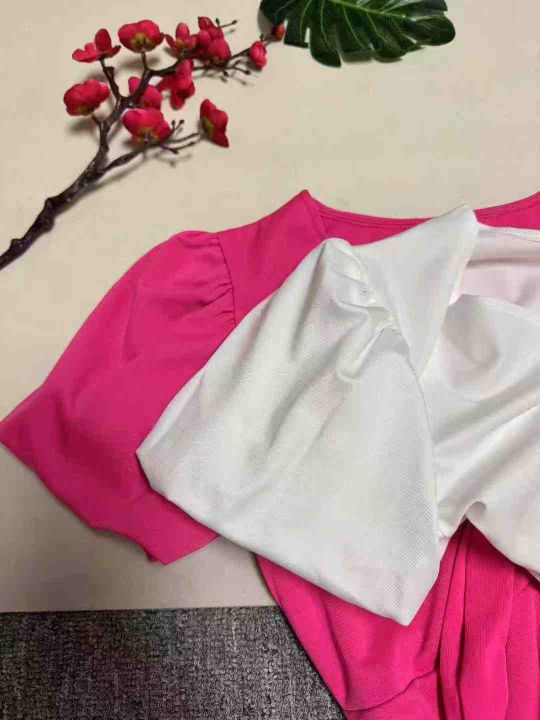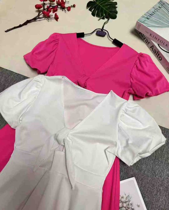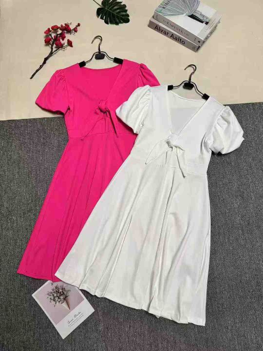 欧美风新款飞飞袖连衣裙蝴蝶结V领镂空A字裙,整款两色,数量88条左右,码数S-3XL,品质好,拉链式独立包装。