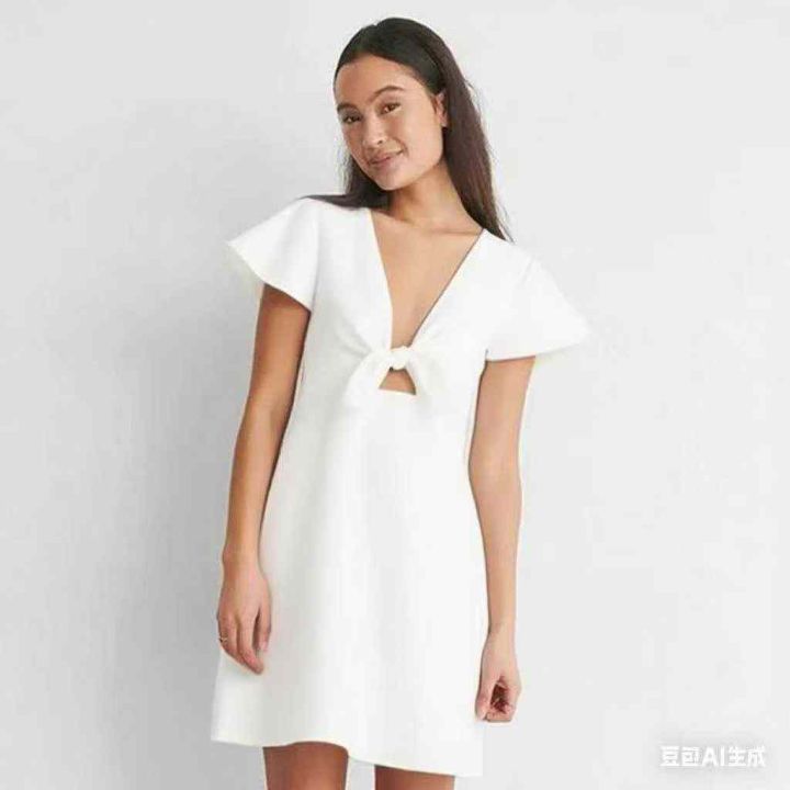 7.5清欧美风新款飞飞袖连衣裙蝴蝶结V领镂空A字裙,整...