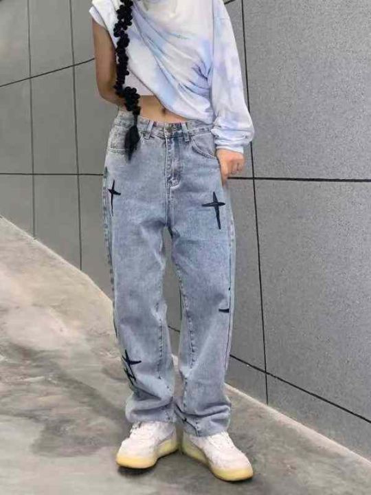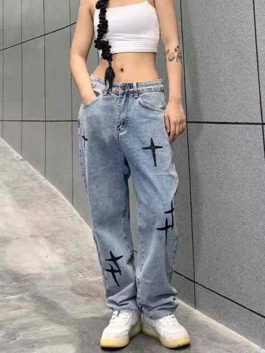 美式复古工装直筒牛仔裤女秋季宽松高腰显瘦水洗阔腿裤子拖地裤,独立包装带...