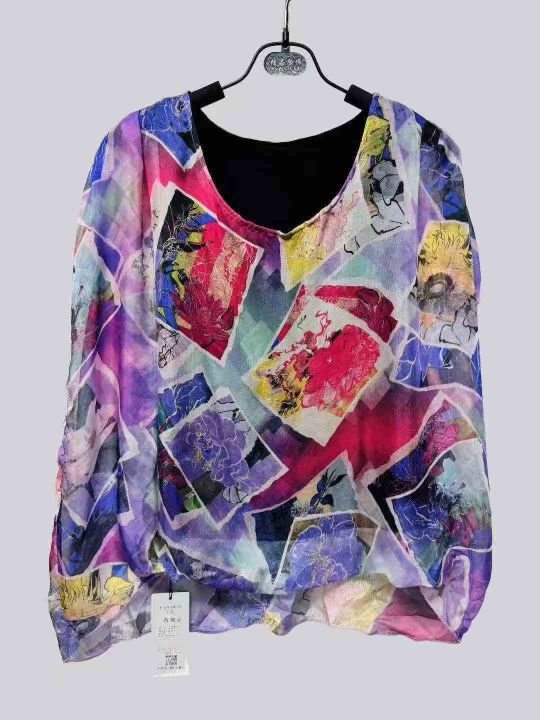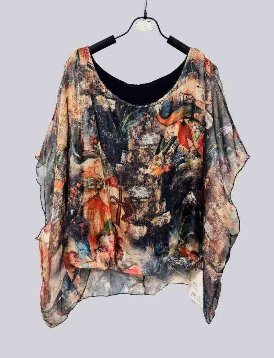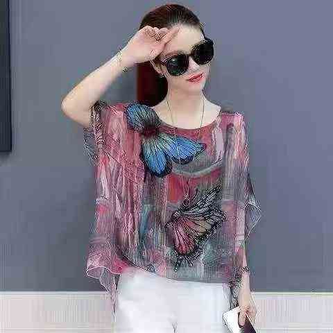 4.5元全清,夏季前短后长雪纺衫女装新款蝙蝠衫短袖宽松衣服遮肚子上衣潮,花型图案多,品质好,独立包装带吊牌,S-XL,1280件左右