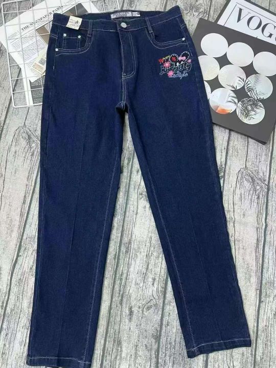 春夏新款高腰直筒牛仔裤女胖mm弹力大码中老年妈妈宽松女长裤☕️260条全清9.9元分货+1,码数m到3xl高弹力。正品独立包装