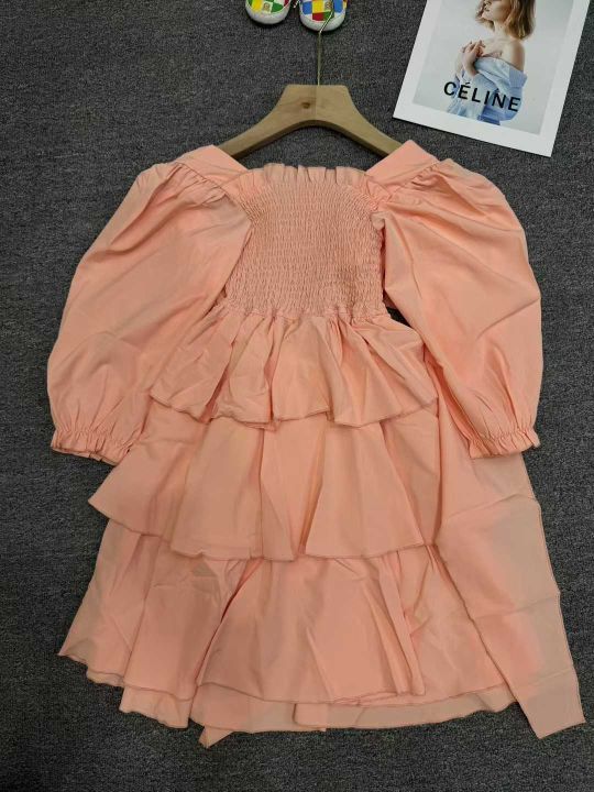 新款欧美方领灯笼袖荷叶边大摆连衣裙花边女童短裙,独立包装,码数110~160,数量190左右,全清9.8元