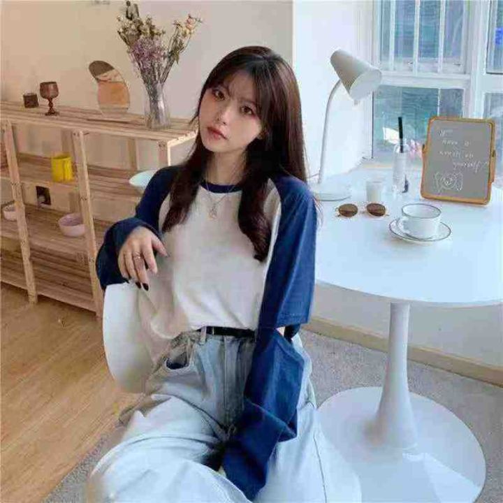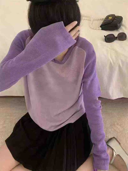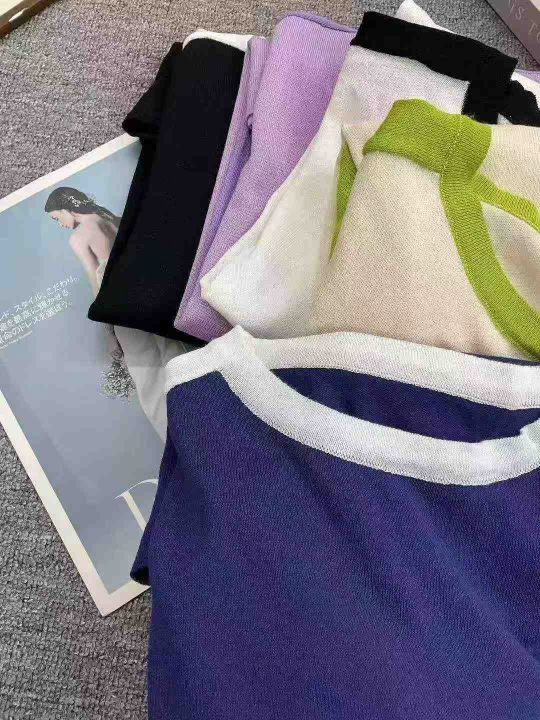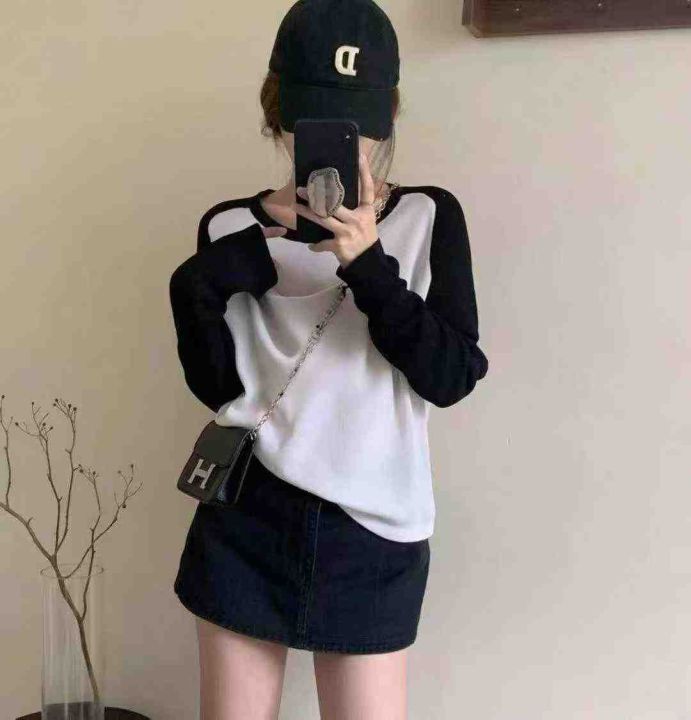 早秋新款复古美式小众破洞设计款宽松撞色百搭针织套头...