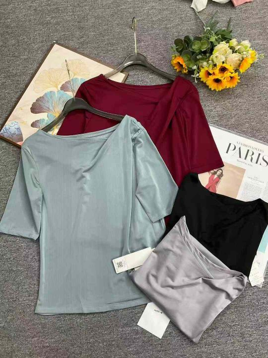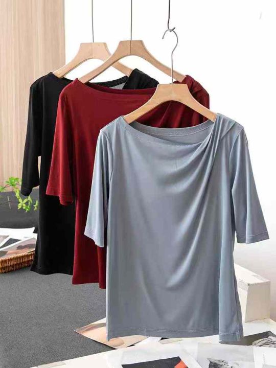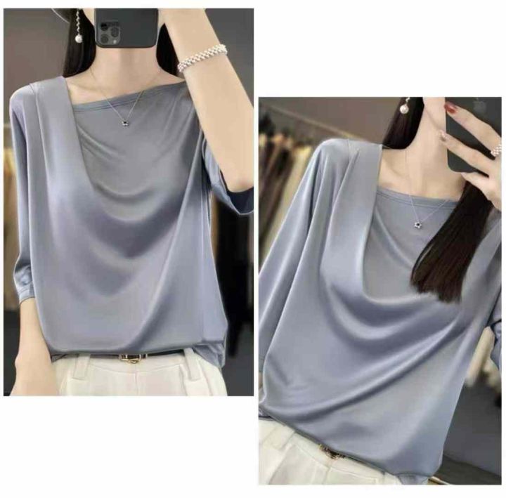夏季新款轻奢法式三醋酸垂感丝滑缎面皱褶不规则斜肩T桖,独立包装带吊牌,码数S--XL码,430件,全清4.9元超低价秒杀!分货加一!