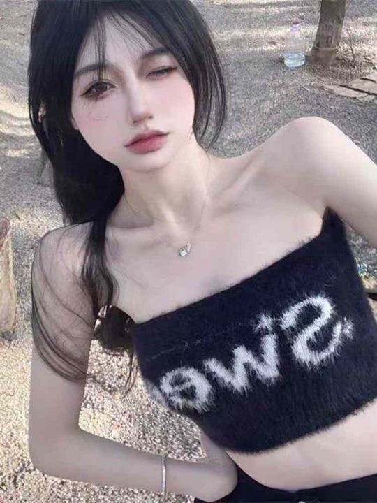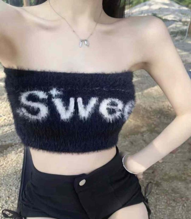 绝美新款春夏季纯欲风毛绒绒甜心辣妹英文字母提花性感针织抹胸背心,独立包装,均码面料软糯舒适弹力大,200件,全清2.9元超低价秒杀!