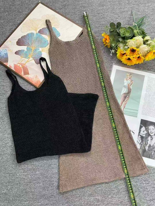 夏季新款纯欲风辣妹性感收腰显瘦仿雪尼尔针织包臀吊带...