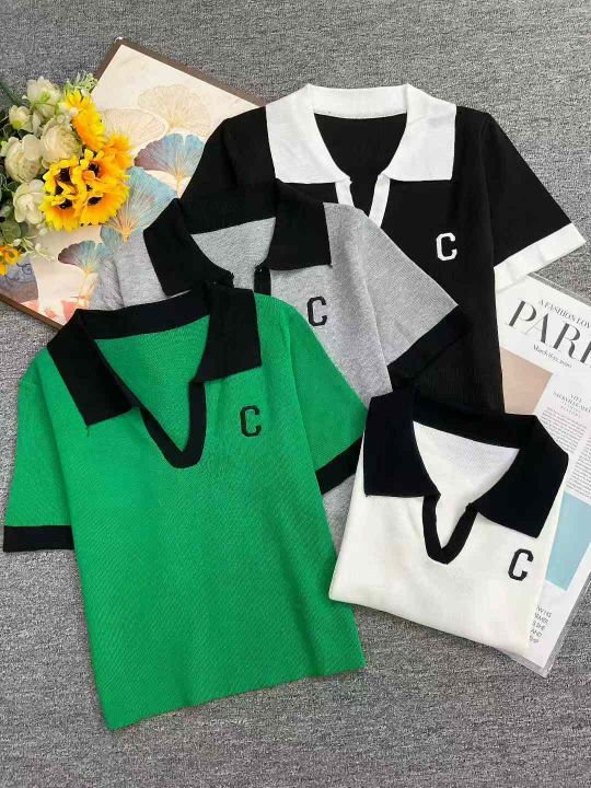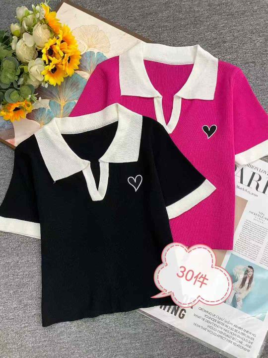 夏季新款刺绣洋气polo领正肩冰丝短袖针织小衫,独立包...