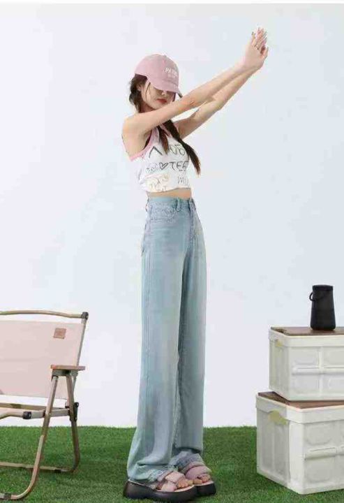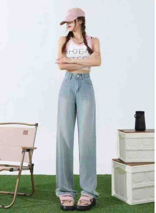天丝莱赛尔牛仔裤直筒高腰阔腿裤,独立包装带吊牌,码...
