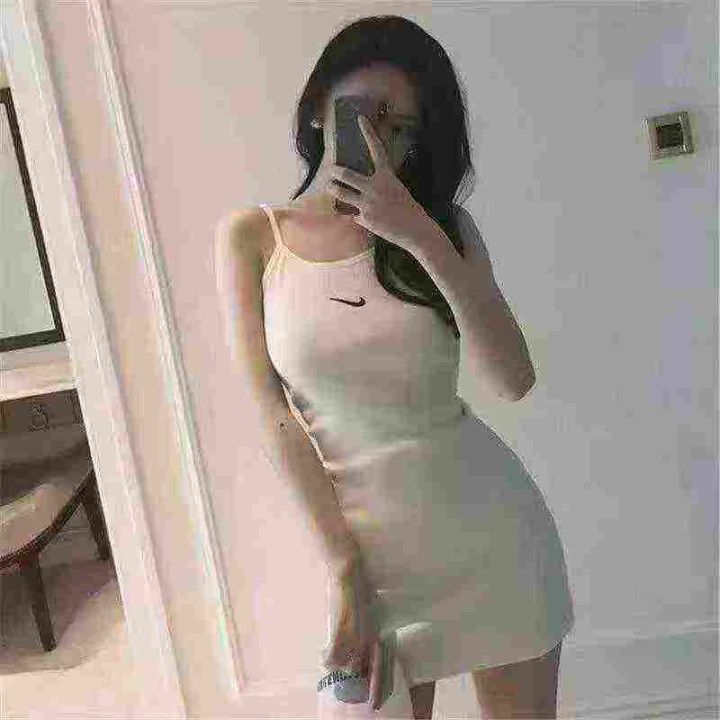 辣妹黑白勾字刺绣吊带裙,70件左右,均码穿70斤-110斤,❤️工厂原包装️无瑕疵