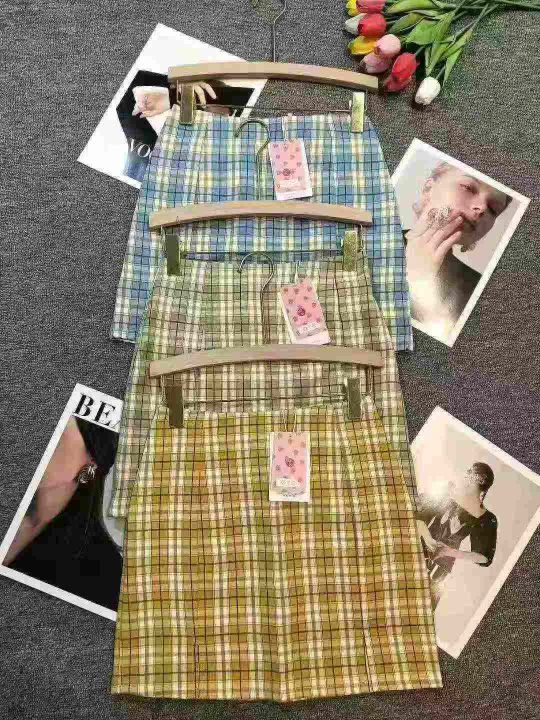 上新全清:¥6.8一件万佳档口品牌辣妹高腰格子包臀半裙...