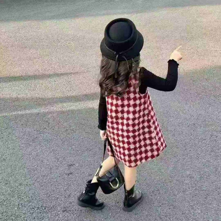[月亮]:潮童韩版毛呢马甲连衣裙