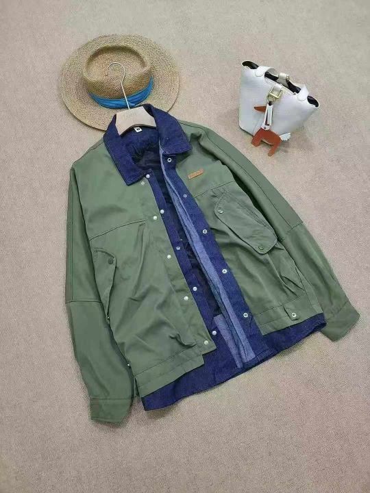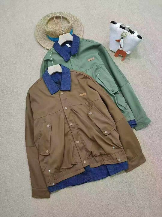 [月亮]:美式潮牌牛仔拼接假两件设计感外套