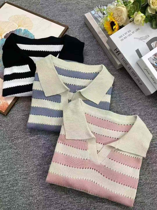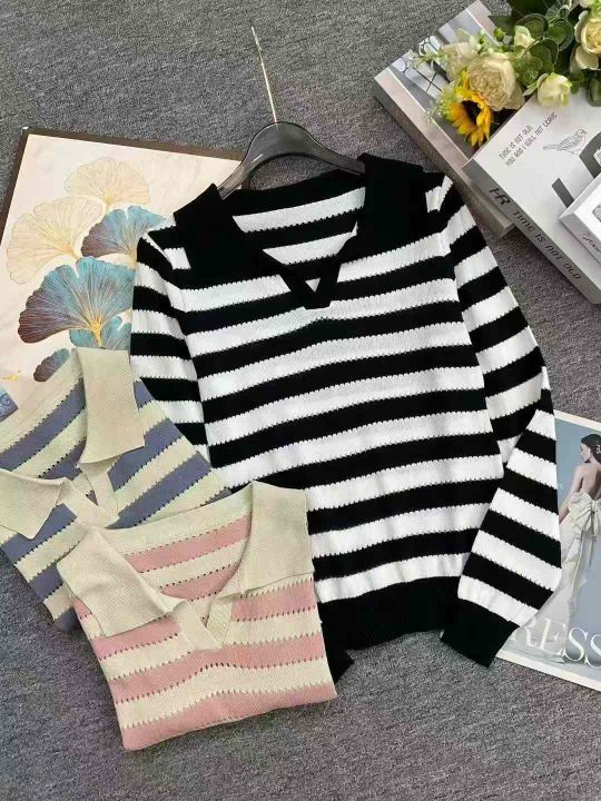 初秋新款复古设计感镂空条纹polo领针织套头毛衣,独立包装,均码面料柔软舒适透气,1000件,全清6.9元超低价秒杀!分货加一!
