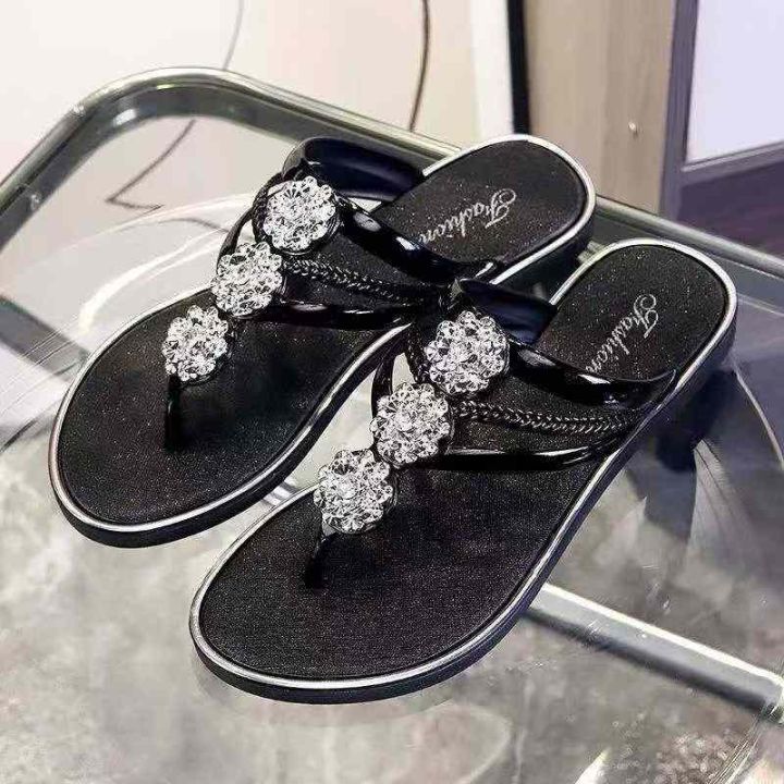 人字拖拖鞋女沙滩鞋 夏天外穿时尚女士水钻夹脚鞋凉鞋 ...