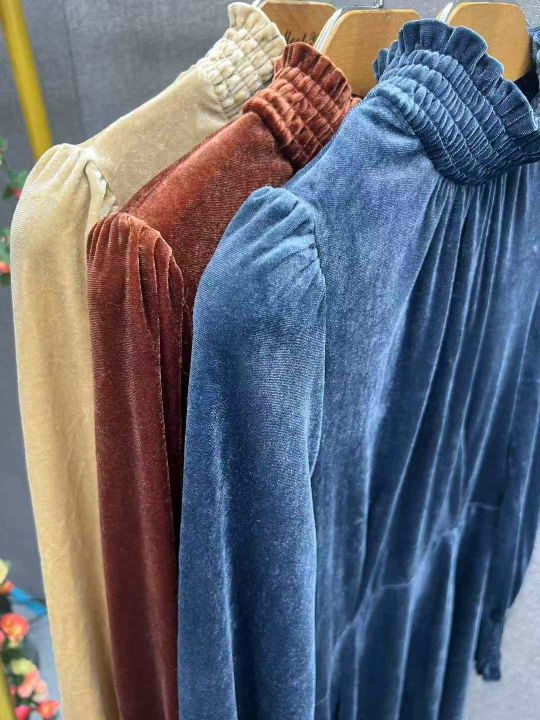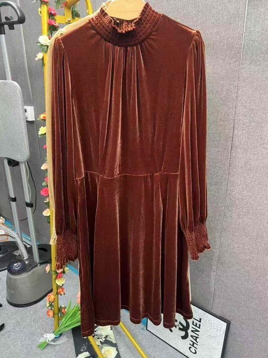 ️全清7.9 高级感法式气质金丝绒连衣裙,纯色百搭中长款连衣裙,全部独立包装,棕色和蓝色为主,一共38件