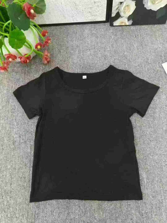 中小童牛奶丝光版T恤 数量10000件左右 尺码2Y-8Y 黑色为主 灰白色较少量 工厂货防水袋包装 一个码一包 货品干净整洁