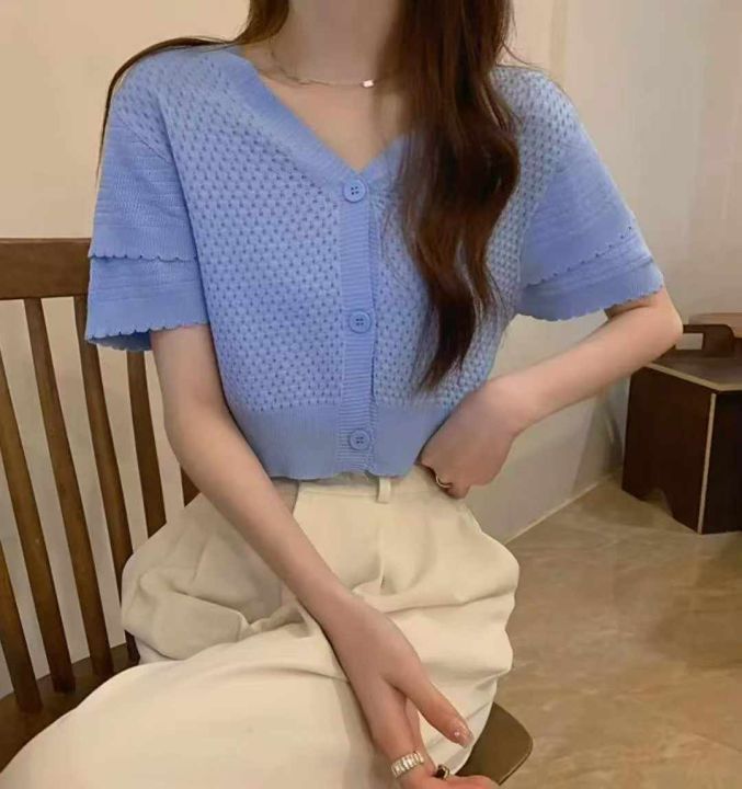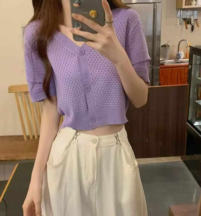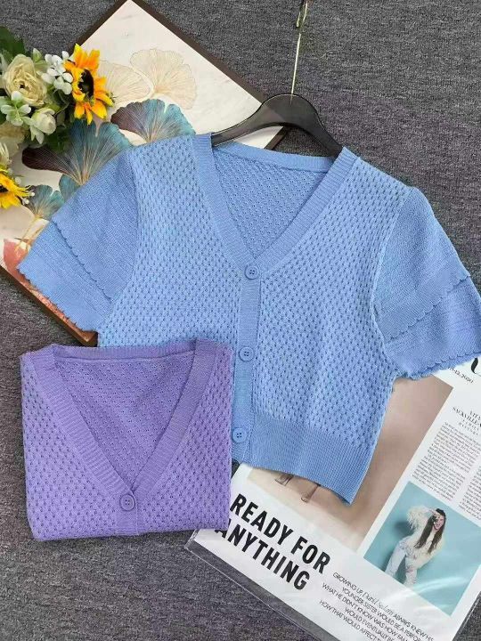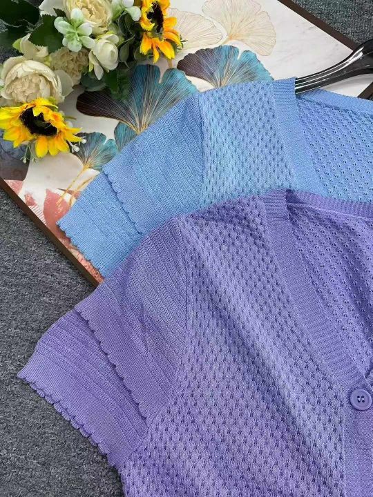 夏季新款法式小香风短款宽松洋气显瘦镂空短袖冰丝针织开衫,独立包装,均码面料柔软舒适透气,1080件,全清6.9元超低价秒杀!分货加一!