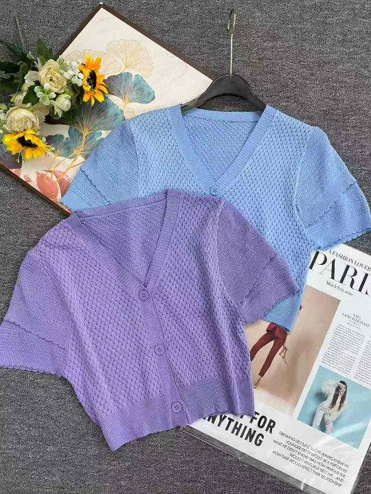 夏季新款法式小香风短款宽松洋气显瘦镂空短袖冰丝针织开衫,独立包装,均码面料柔软舒适透气,1080件,全清6.9元超低价秒杀!分货加一!