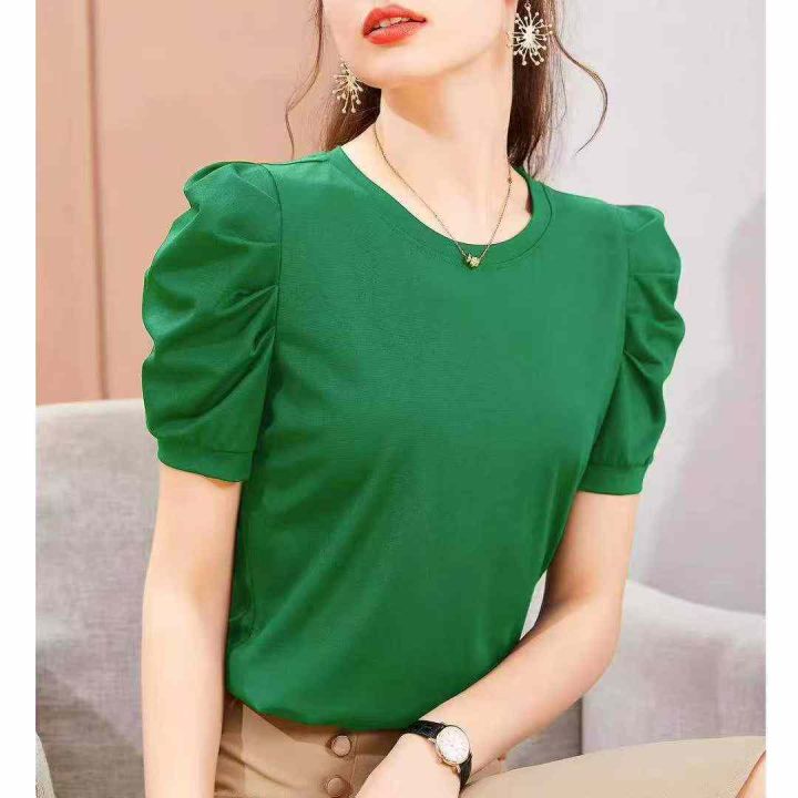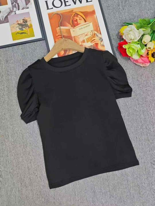 工厂回收227件时尚褶皱设计泡泡袖纯色短袖T恤女,码数S-2XL。版型质量很好,面料有弹性,百搭不挑人,全部独立包装。