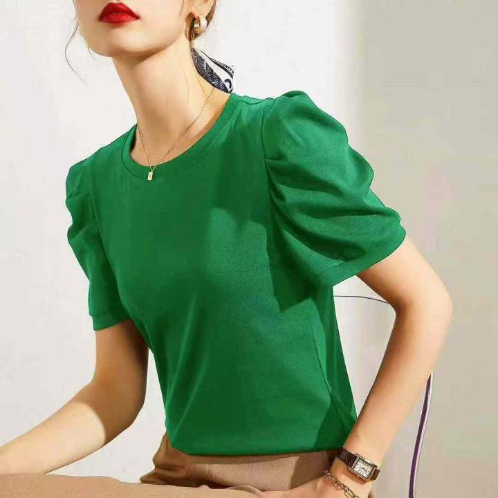 3.5清工厂回收227件时尚褶皱设计泡泡袖纯色短袖T恤女...