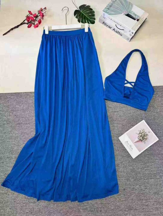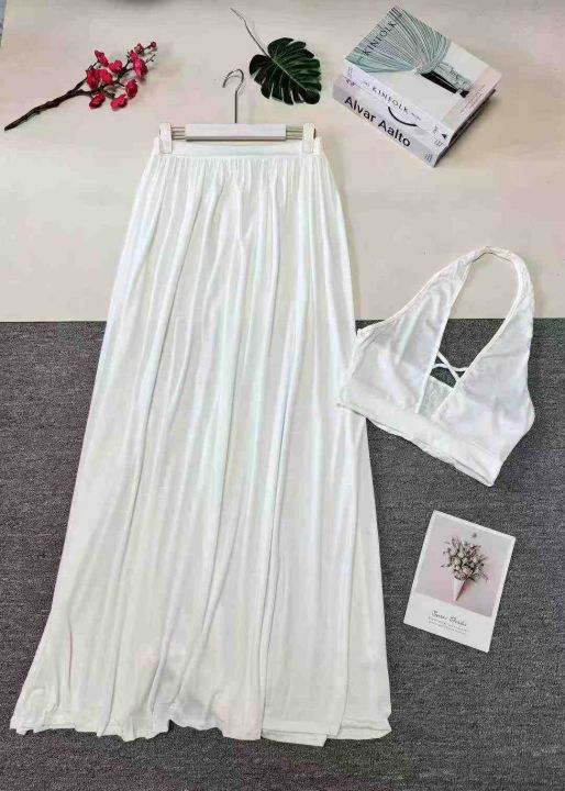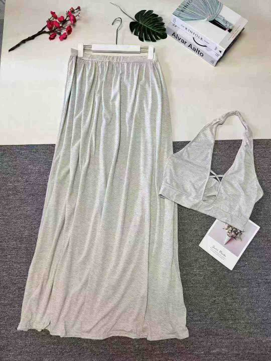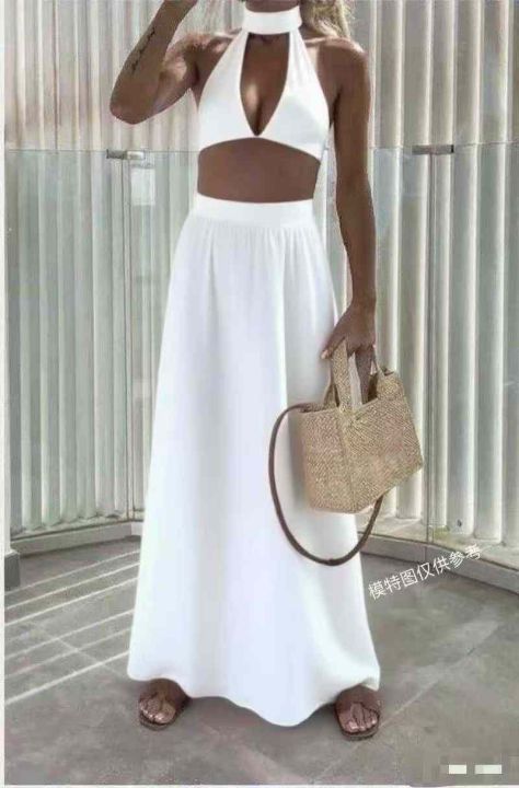 6.8清欧美洋气性感挂脖高腰半身长裙两件套,整款四色...