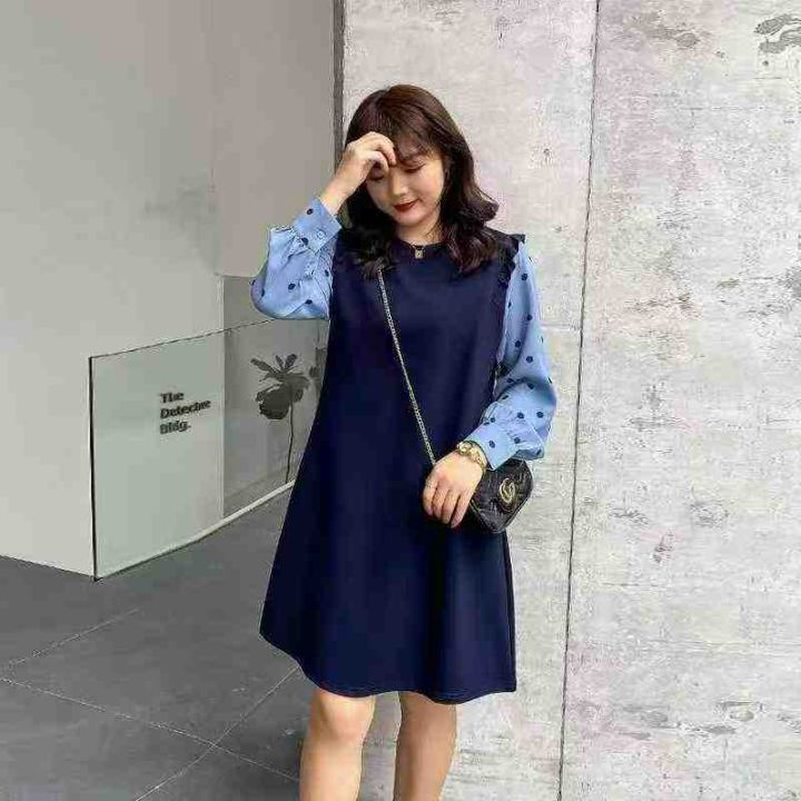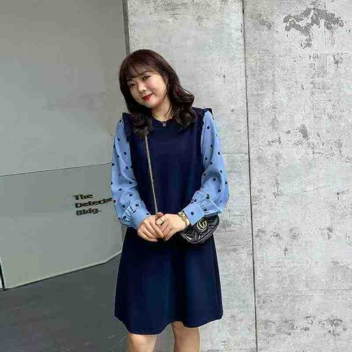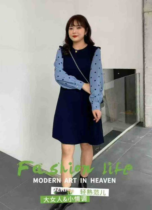 春季新款胖妹妹洋气假两件减龄显瘦遮肉针织毛衣连衣裙...