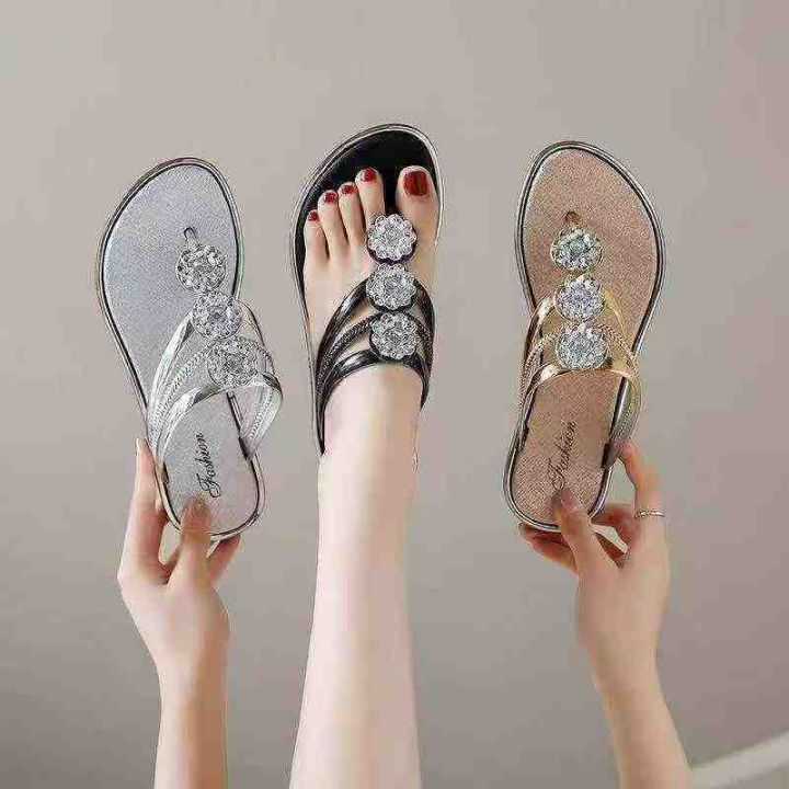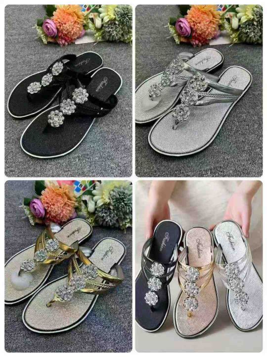 人字拖拖鞋女沙滩鞋 夏天外穿时尚女士水钻夹脚鞋凉鞋 平底凉拖鞋,独立包装,码数:35-45,数量6400双,全清5.5元,分货➕0.5