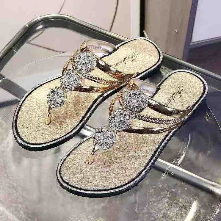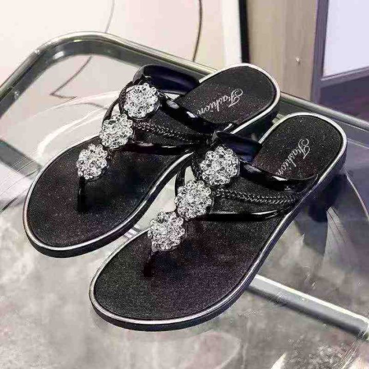 人字拖拖鞋女沙滩鞋 夏天外穿时尚女士水钻夹脚鞋凉鞋 ...