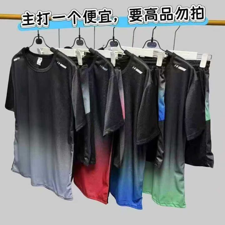 男士运动服套装夏季速干短袖短裤薄款健身T恤跑步篮球训练两件套,图片款为主小部分杂少,独立包装,码数M-5XL,全清6.9元,数量2942套。分货+1
