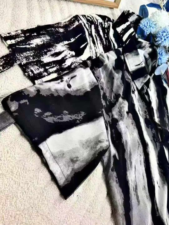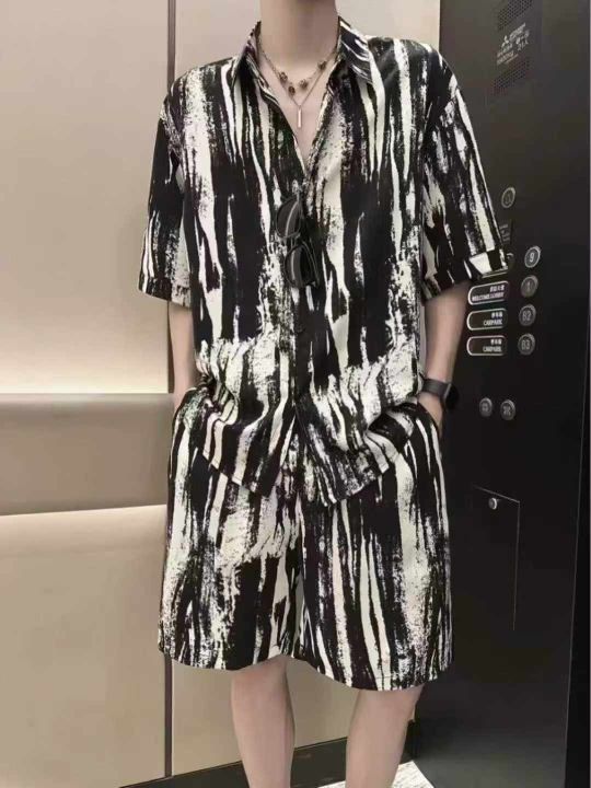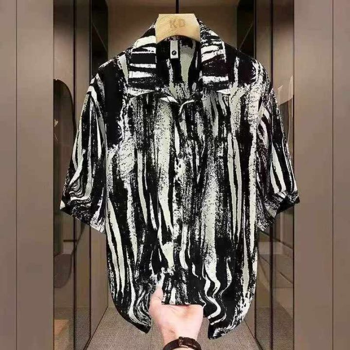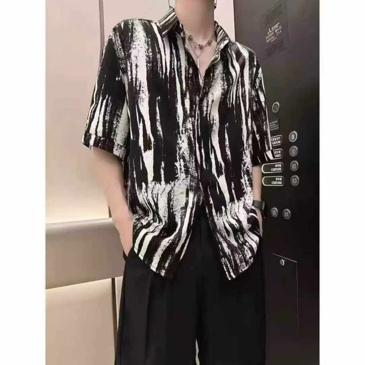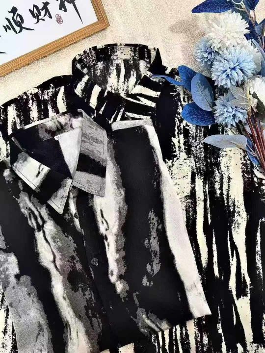 (天猫在售杭州货)男夏季扎染短袖衬衫冰丝薄款高级感潮牌痞帅半袖衬衣宽松休闲衬衣外套
