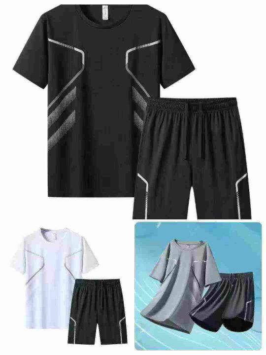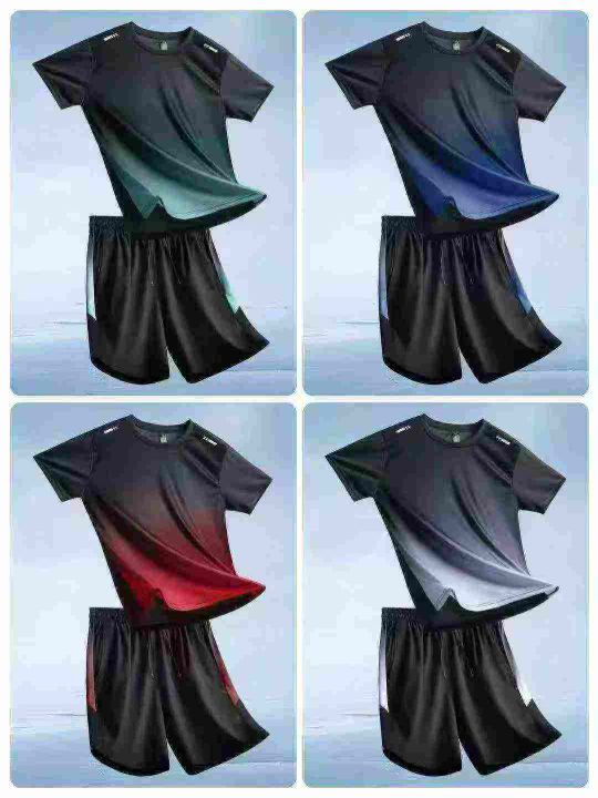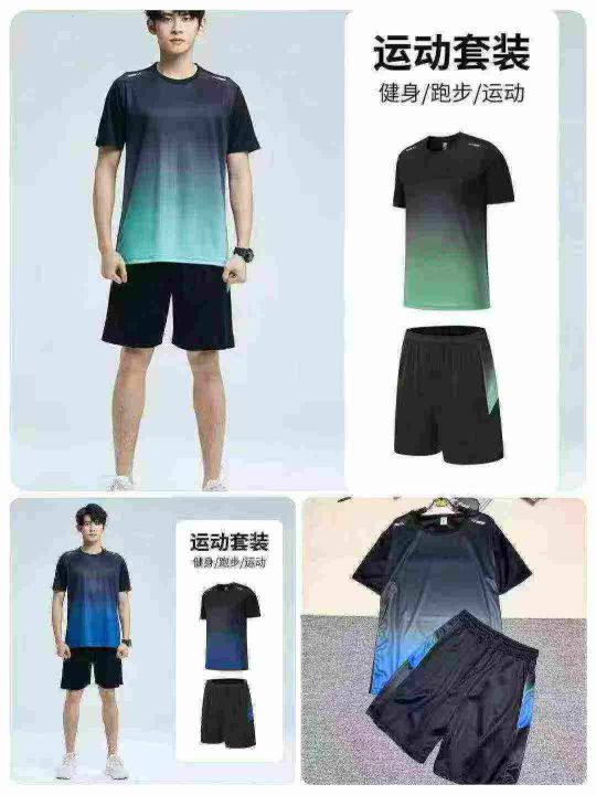 男士运动服套装夏季速干短袖短裤薄款健身T恤跑步篮球...