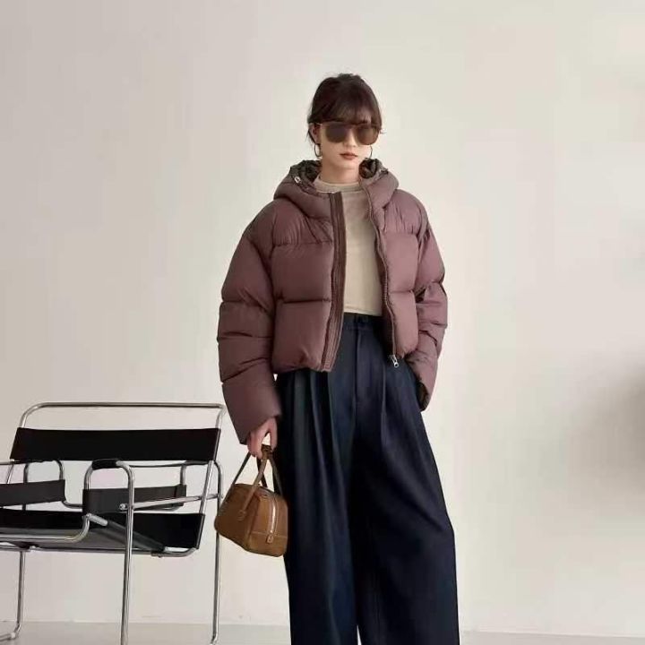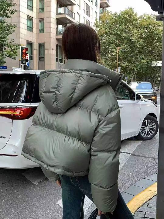 35肯豆风短款棉服冬季新款小个子韩版连帽加厚面包服外...