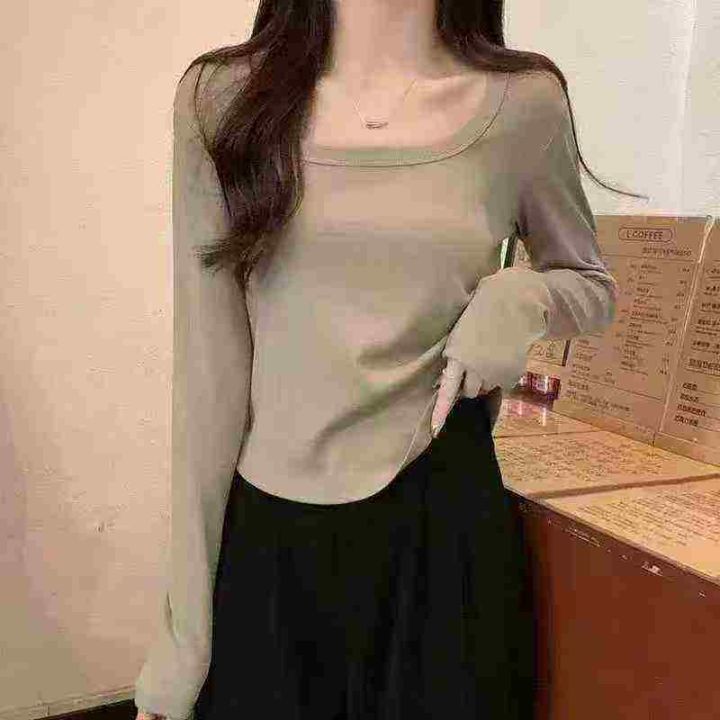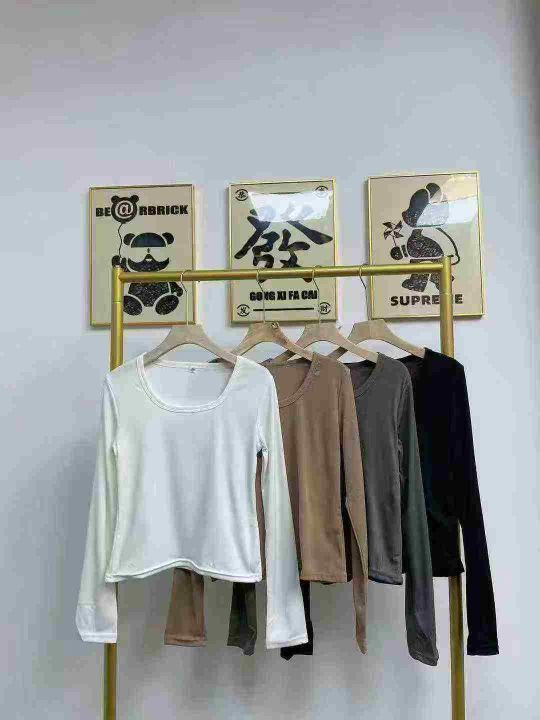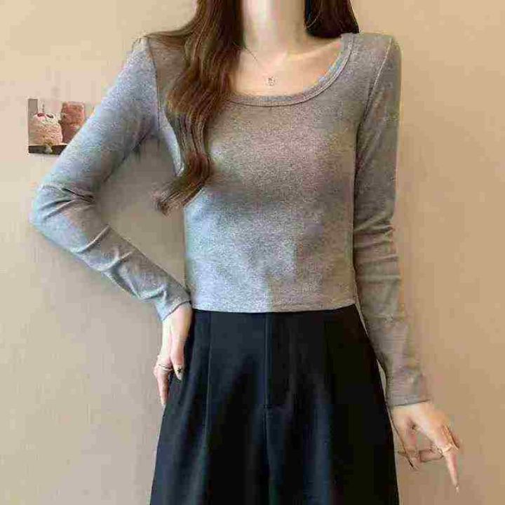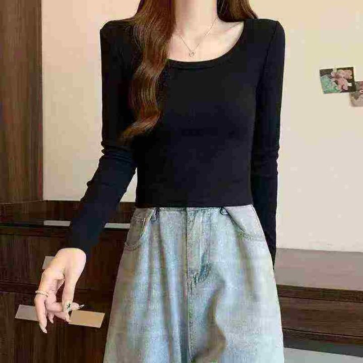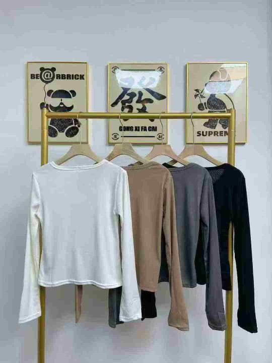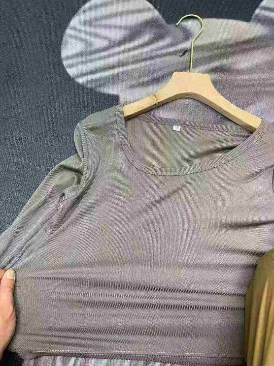 天猫在售1100件韩式甜辣妹冰丝螺纹简约修身百搭长袖打底衫,高弹力,单款四色,S-2XL,独立包装带吊牌