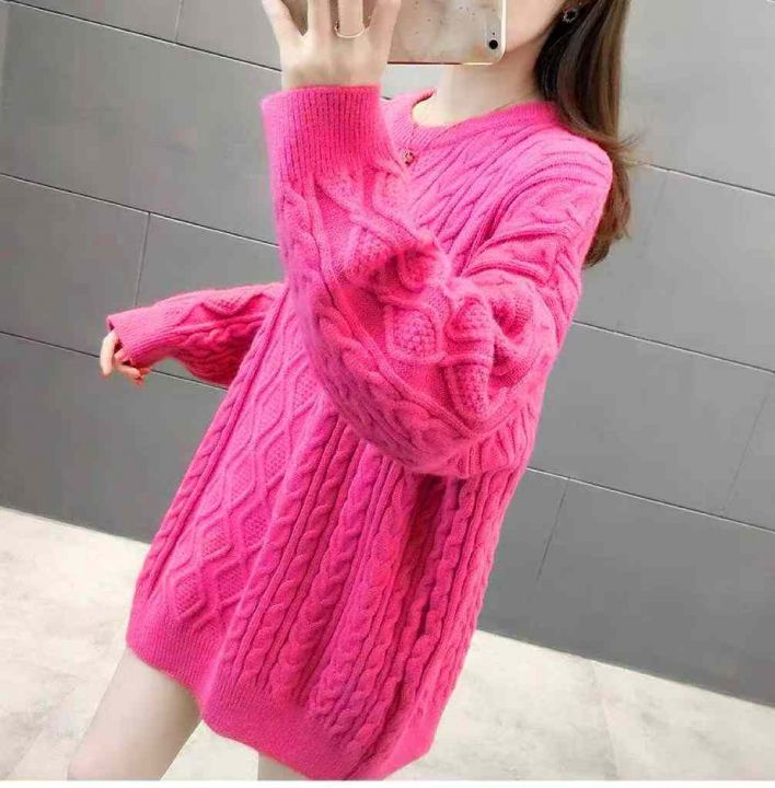 秋冬新款韩系穿搭慵懒麻花宽松显瘦少女风2条毛包芯纱套头毛衣,独立包装,...