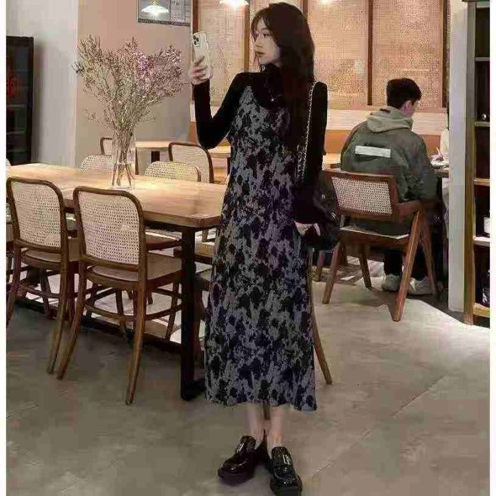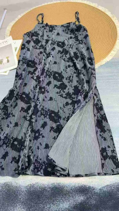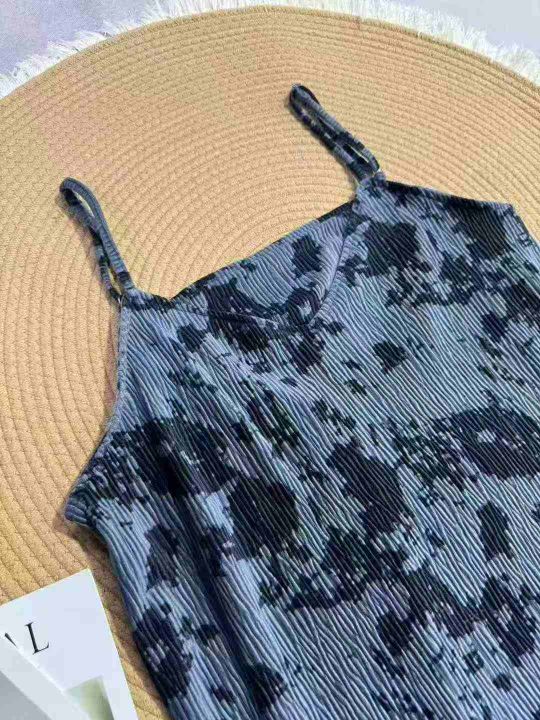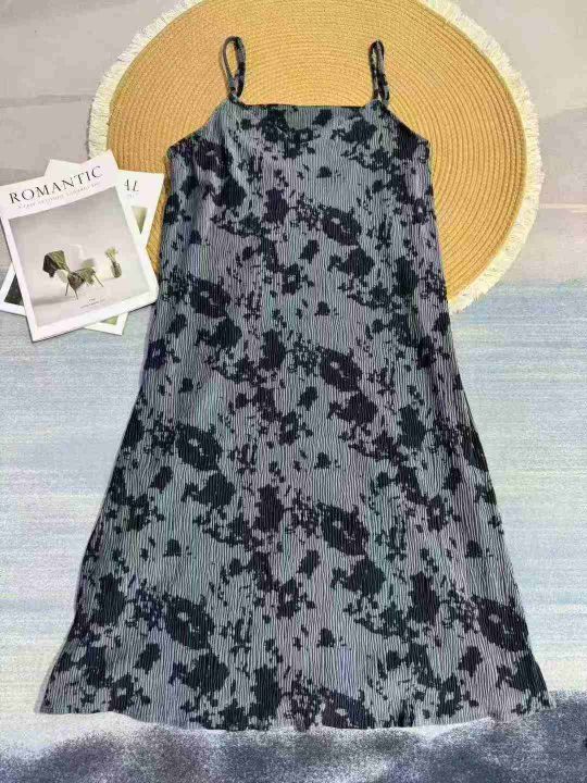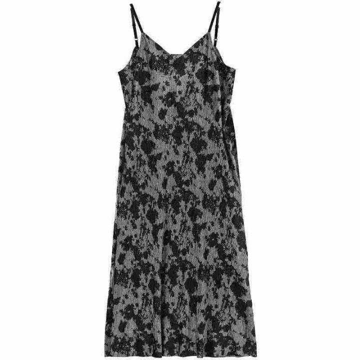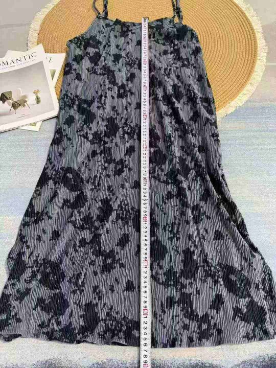 淘宝在售爆款水墨碎花丝绒宽松显瘦压褶吊带裙子,中长...