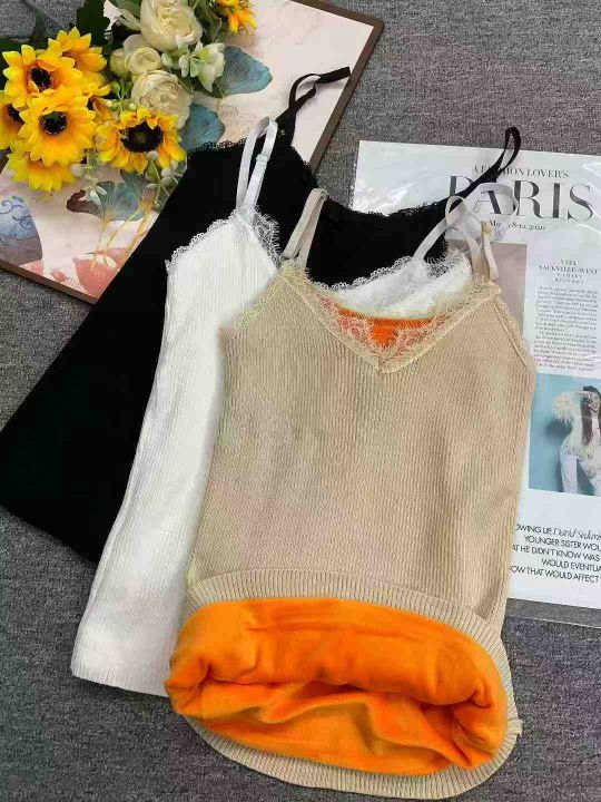 秋冬新款加绒加厚保暖弹力修身打底内搭v领蕾丝无袖针织吊带,独立包装,肩带可调节,均码面料软糯厚实弹力大,225件,全清3.9元超低价秒杀!分货加一!