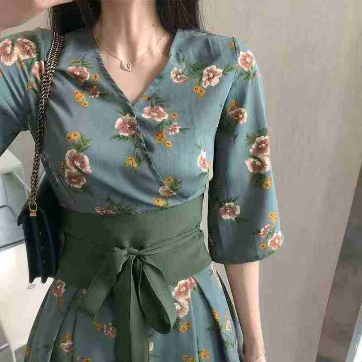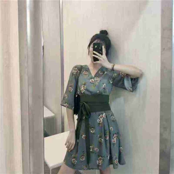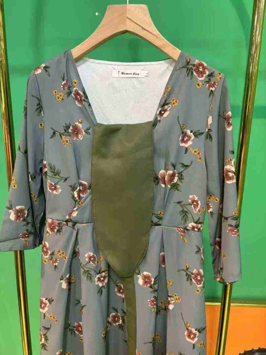 100件左右2025夏季娃娃egg裙法式过膝智熏裙法式桔梗印花雪纺裙,有腰带!尺码S-L,独立包装!全清13.8
