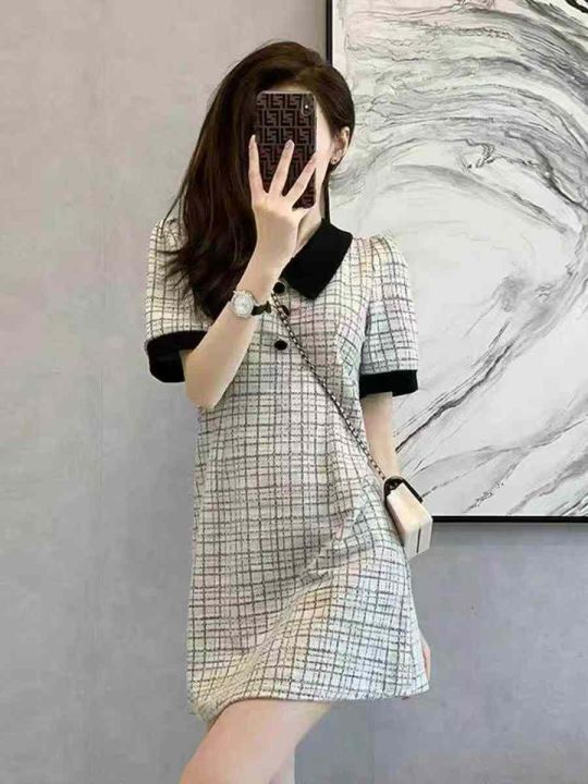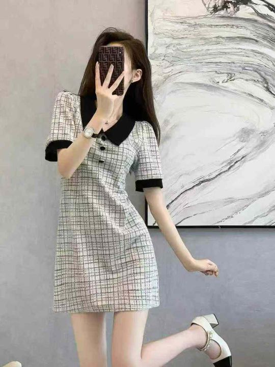 数量:195件,全清10.8,法式复古赫本风裙子,2025年夏季新款小香风娃娃领连衣裙,面料柔软带弹力高级显瘦连衣裙,独立包装,码数:S~XL