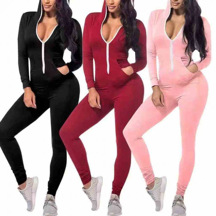 3.8清150件欧美外贸性感连体衣 拉链连帽运动健身连体裤连帽长袖连体衣 ...