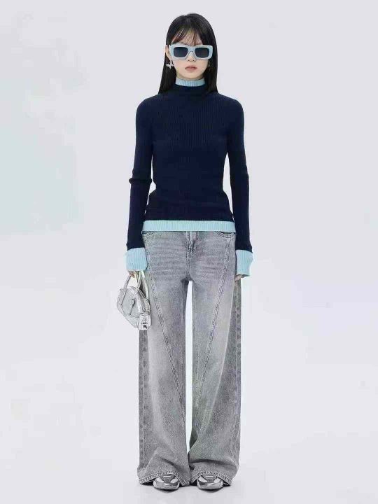 拼色长袖修身百搭洋气纯色高领/半高领针织衫潮,包芯...
