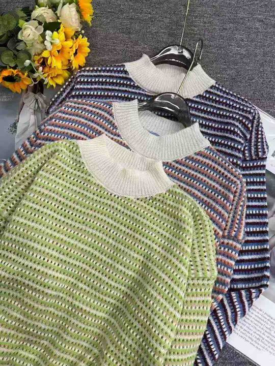 早秋新款学院风条纹宽松短款减龄套头毛衣,独立包装,...
