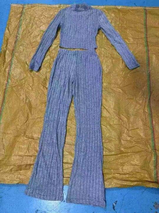 纯色坑条长袖针织衫套装,独立包装,码数S-XL,数量48套Women\'s two-piece suit, size S-XL, quantity 48 pieces.