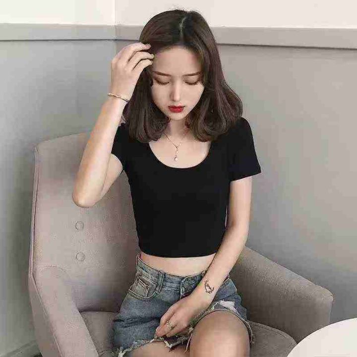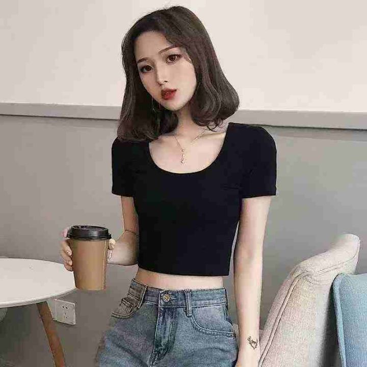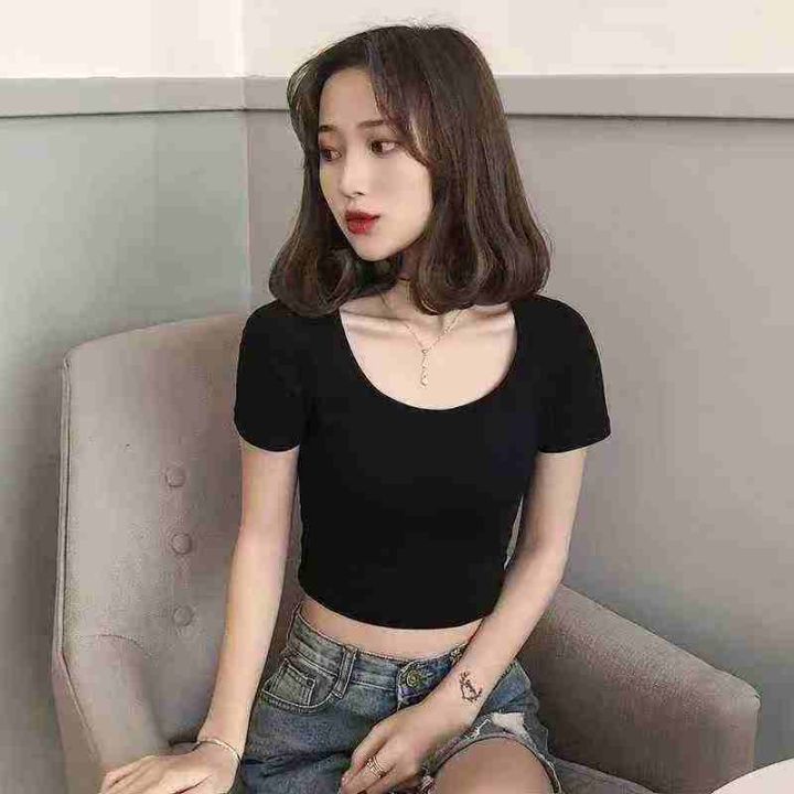 4.8清139件U领性感露背短袖T恤女夏辣妹外穿紧身短款正肩上衣弹力内搭打底衫 码数XS-XL。独立包装带吊牌