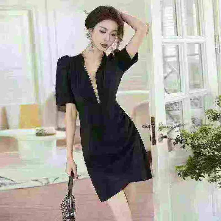 法式赫本风高级感小黑裙V领修身显瘦包臀裙2025夏季新款连衣裙