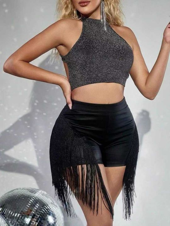 欧美风性感大露背挂脖吊带背心女夏亮丝设计短款露脐外穿内搭上衣,67件,M-L码,独立包装