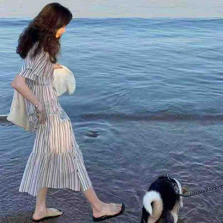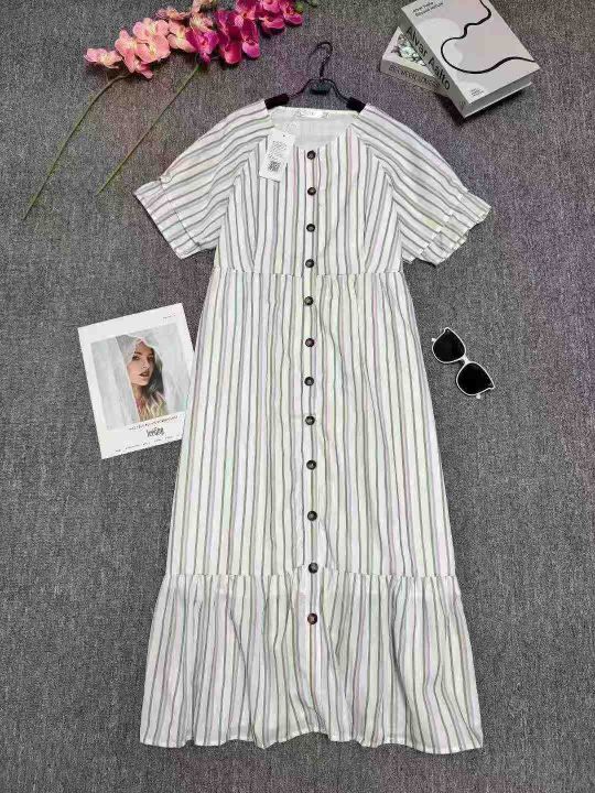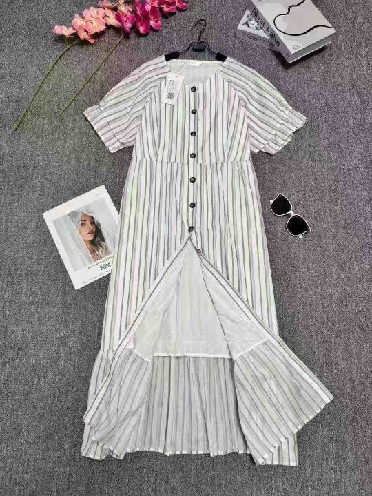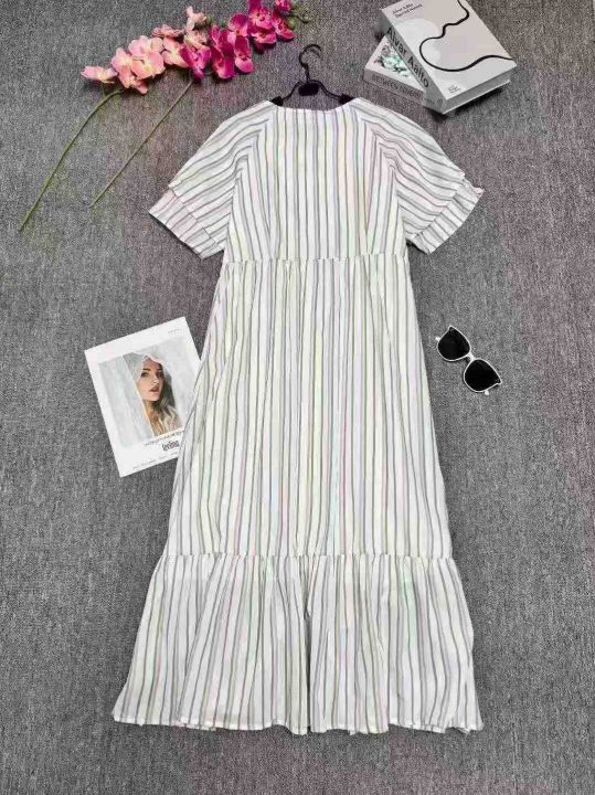 ⭐⭐微瑕疵103件条纹衬衫小众泡泡袖收腰鱼尾长裙连衣...