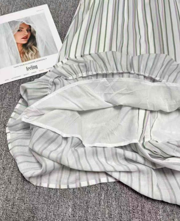 ⭐⭐微瑕疵103件条纹衬衫小众泡泡袖收腰鱼尾长裙连衣...