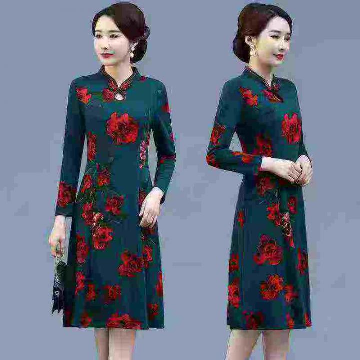 6.9清天猫仓回收232件改良金丝绒长款高端礼服复古气质优雅开叉旗袍连衣裙,...