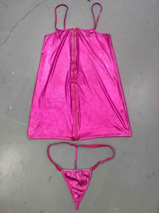 1.8秒杀[庆祝][庆祝] 两件套性感辣妹漆皮吊带弹力包臀连衣裙,独立包装,瑕疵串色(如图8)均码:穿到80-100斤左右,数量230套左右